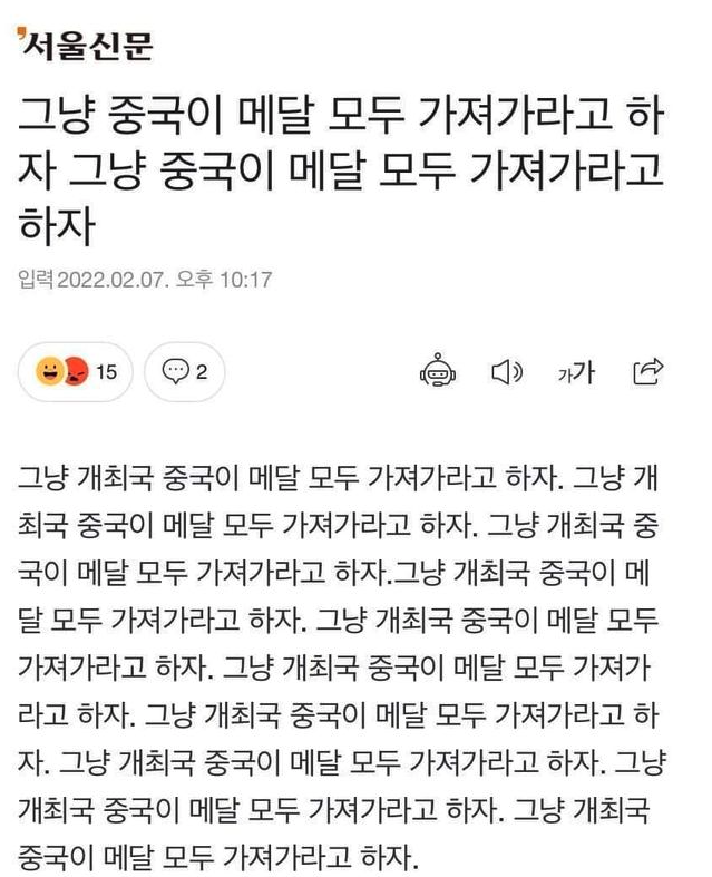기사의 본문도 그냥 개최국 중국이 메달 모두 가져가라고 하자 입니다.