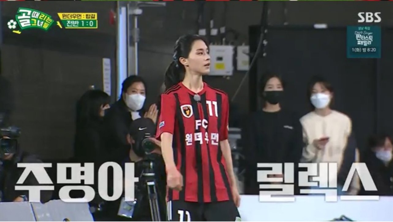 주명은 172cm의 큰 키를 활용한 완벽한 헤딩 수비와 정확한 패스 등으로 ‘FC 원더우먼’의 대체불가한 스위퍼(공격에도 가담하는 최후방 중앙수비수) 역할을 해내며 ‘골때녀’ 새 다크호스로 등극했습니다.