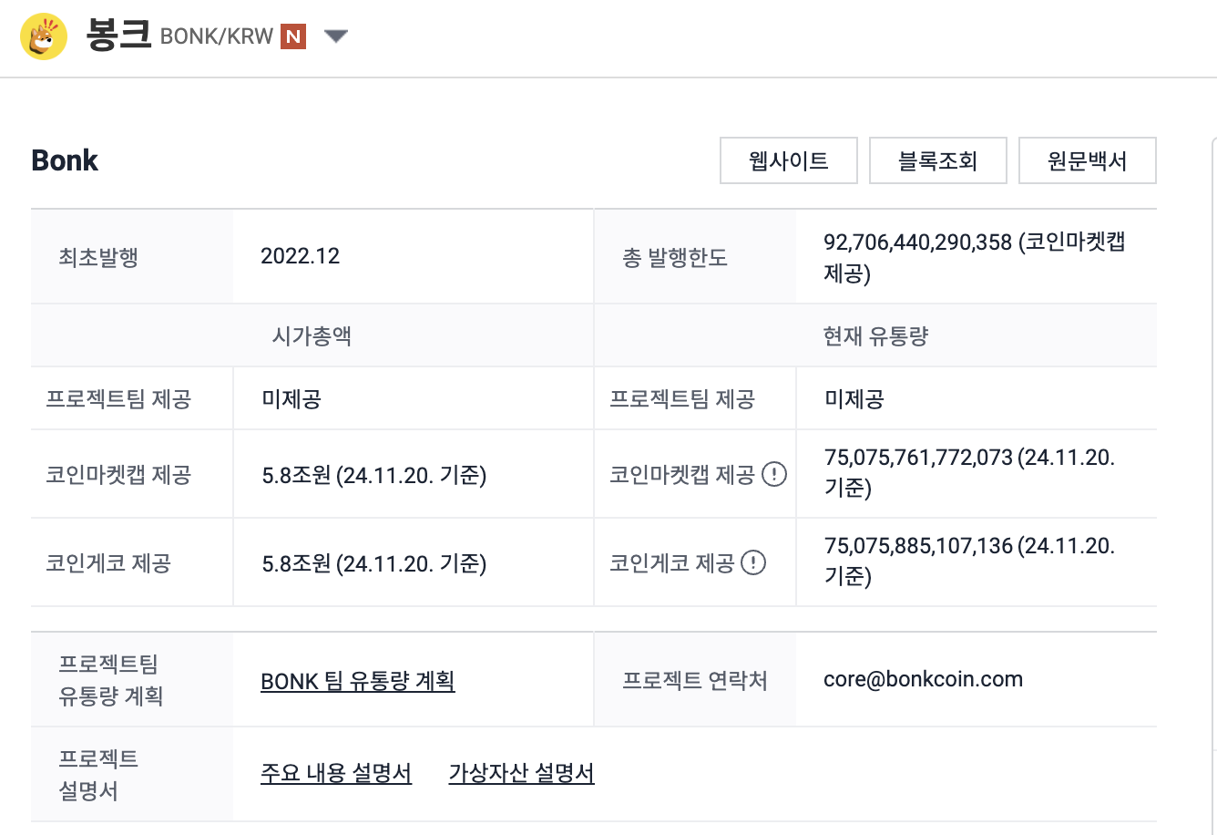 2024년 11월 20일에는 봉크 코인이 새롭게 상장되었습니다.