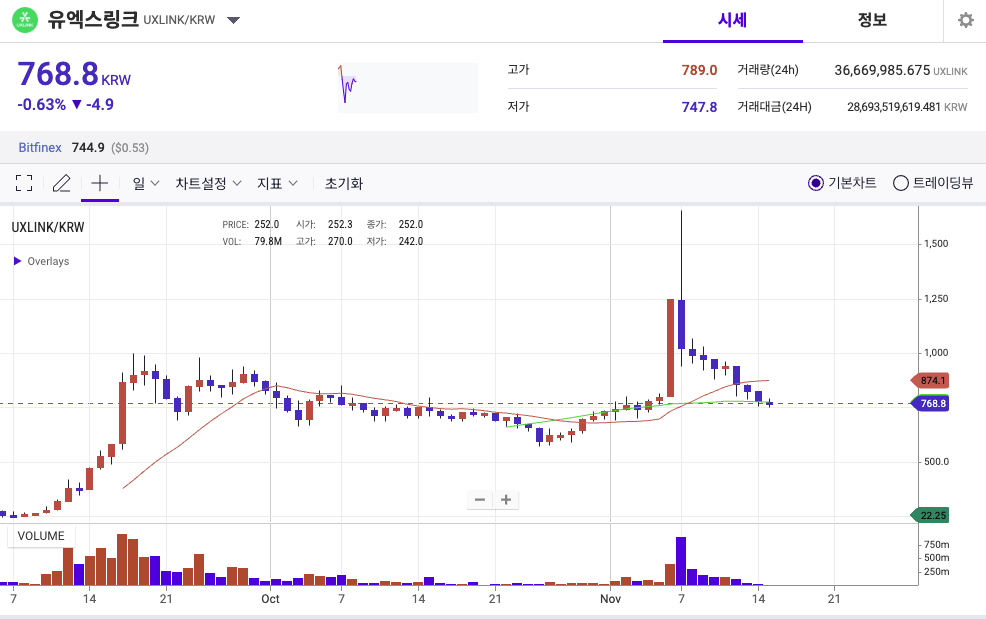 • 현재 UXLink 코인의 가격은 768원으로, 실생활 유틸리티와 블록체인 기술의 발전에 따라 점진적인 상승 가능성이 있습니다.