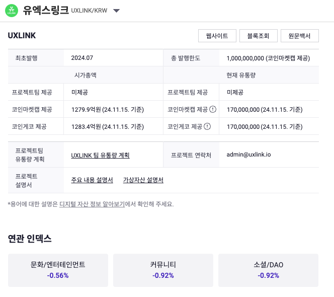 2024년 11월 기준 UXLink 코인 정보