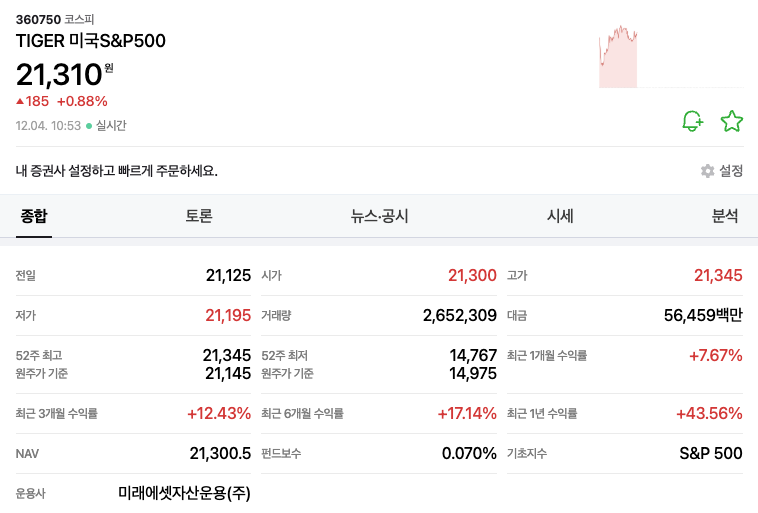 TIGER 미국 S&P500 ETF는 미래에셋자산운용의 대표적인 상품 중 하나로,